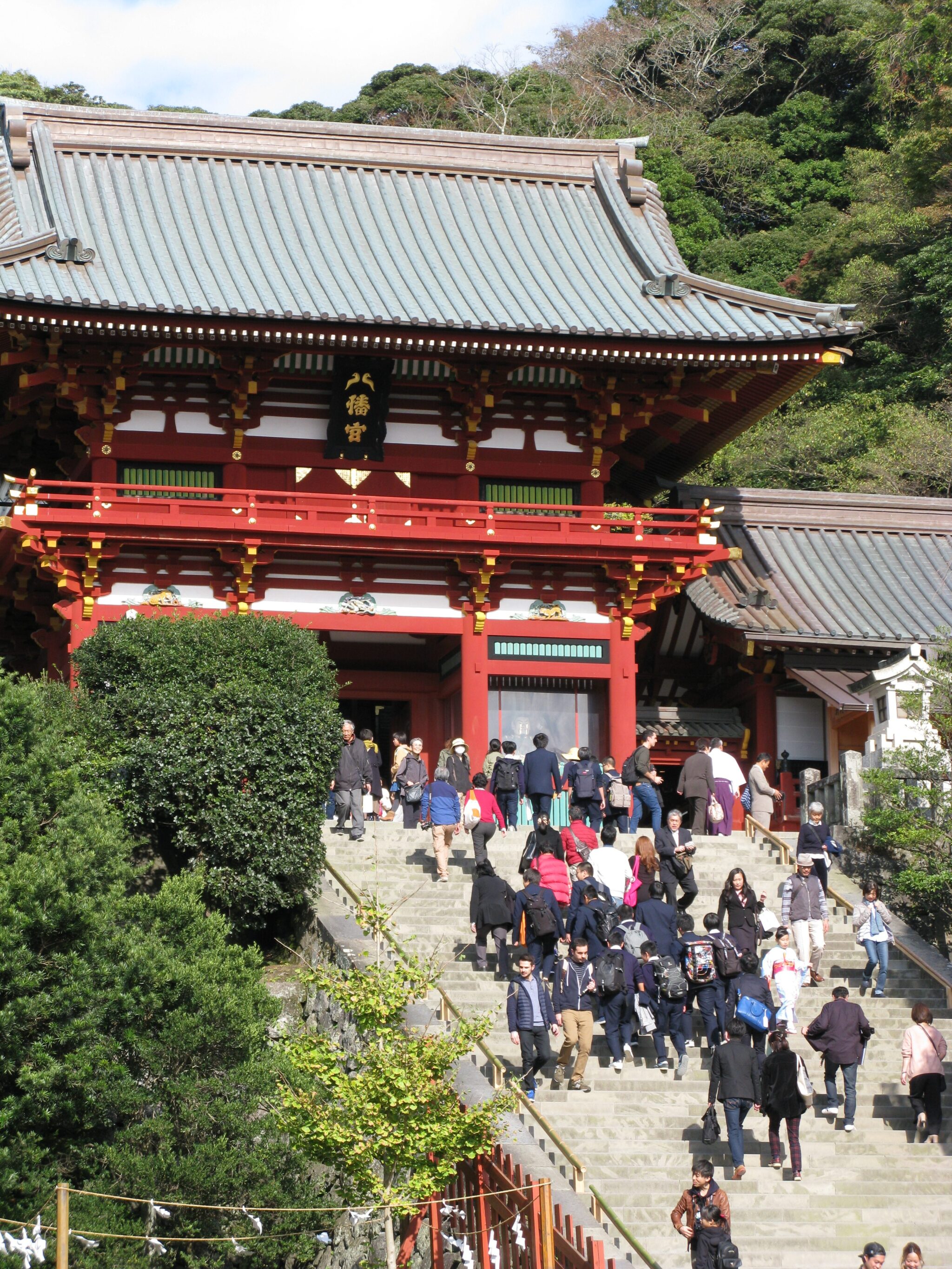 京都から新幹線で新横浜へ移動し、バスに乗り換え鎌倉に到着後、自由散策を行いました。続いて、ガイドさんとともに鶴岡八幡宮や高徳院を巡り、歴史的背景を学びました。