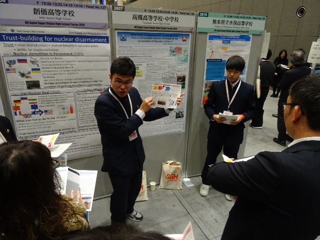 ポスターセッションには発表者2名、ディスカッションには留学生2名を含めた全員が参加しました。また今回は、ボランティアとしてディスカッションの司会をする高2生の2名も加わりました。残念ながらポスターセッションでの賞獲得とはなりませんでしたが、全国レベルのポスター発表と英語での発表・ディスカッションを行うことができ、参加生徒にとっては次へとつながる良い経験ができました。留学生にとっては全国に散らばっていた留学生が一堂に会したことで旧交を温める機会ともなり、楽しく充実した一日を過ごすことができました。