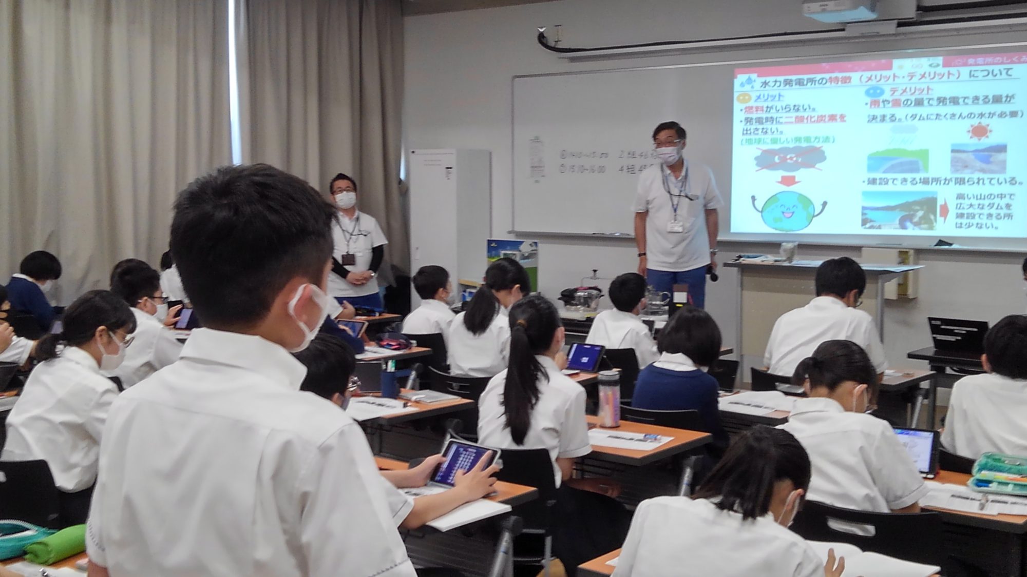 6月21日(月)・22日(火)・24日(木)の3日にわたって、関西電力送配電株式会社より講師を招き、出前授業が行われました。対象は、中学1年生。1クラスずつ、計6回の授業でした。