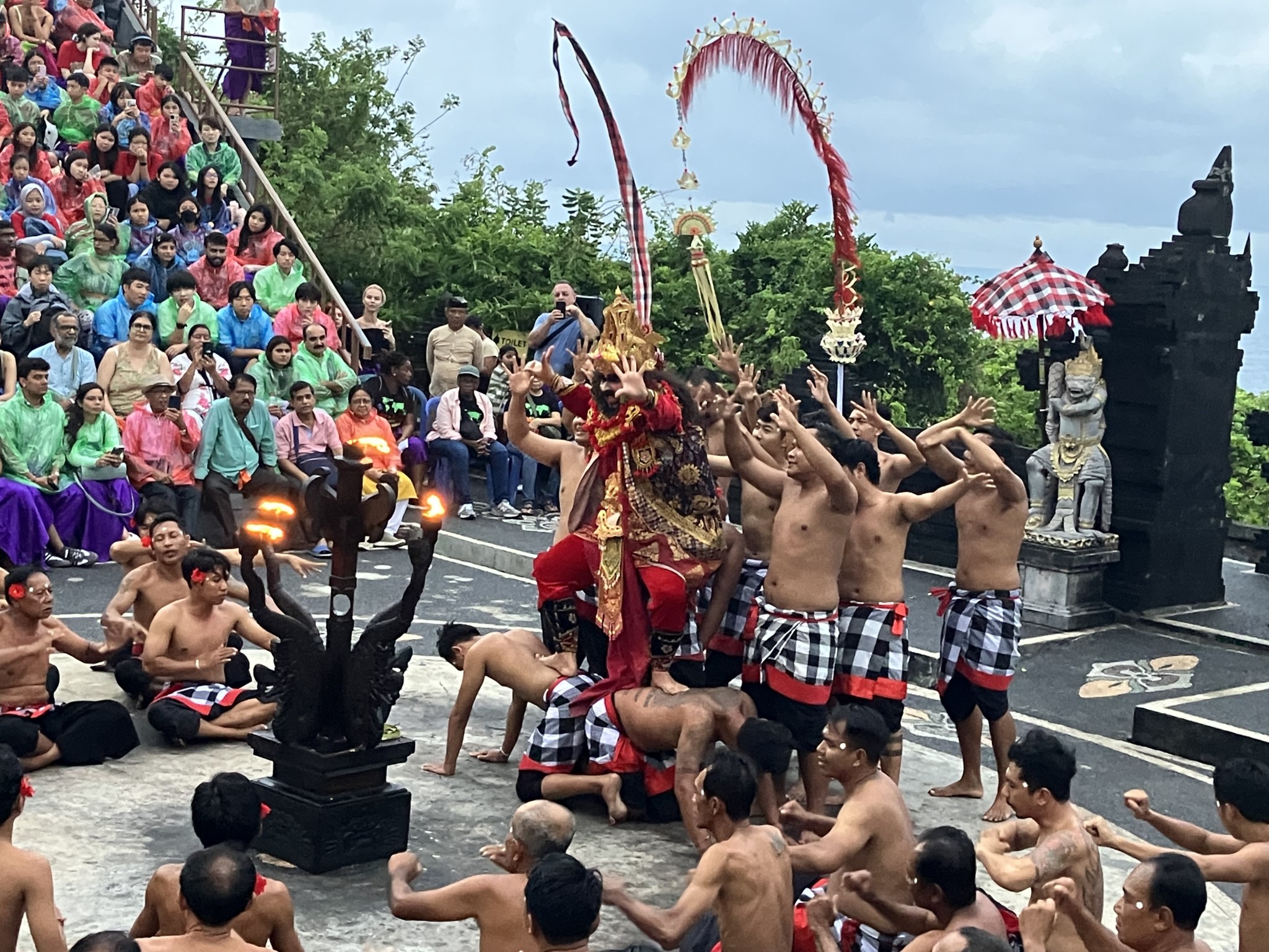 その後、ウルワツ寺院から南半球の広大な海を見て感激し、バリ島の伝統的な舞踏劇「ケチャックダンス」を鑑賞しました。独特な舞踏劇の中にもユーモアが盛り込まれていて、生徒たちは大いに楽しみました。さらに、偶然行われたサプライズ・プロポーズに驚いたり、喜んだりしていました。