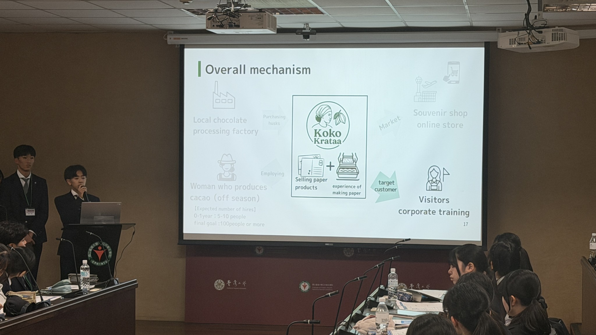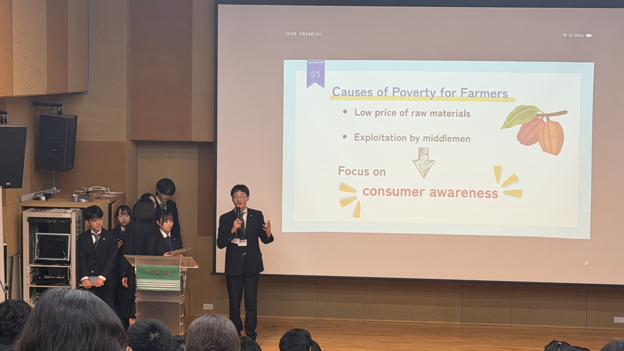 午前中は国立台湾大学を訪問し、AIと医療に関する講義を受講しました。その後、前日までの成果を踏まえ選抜された代表3班が英語でのプレゼンテーションに臨みました。大学教授からは専門的かつ高度な指摘を受け、学術的な刺激を大いに受ける機会となりました。