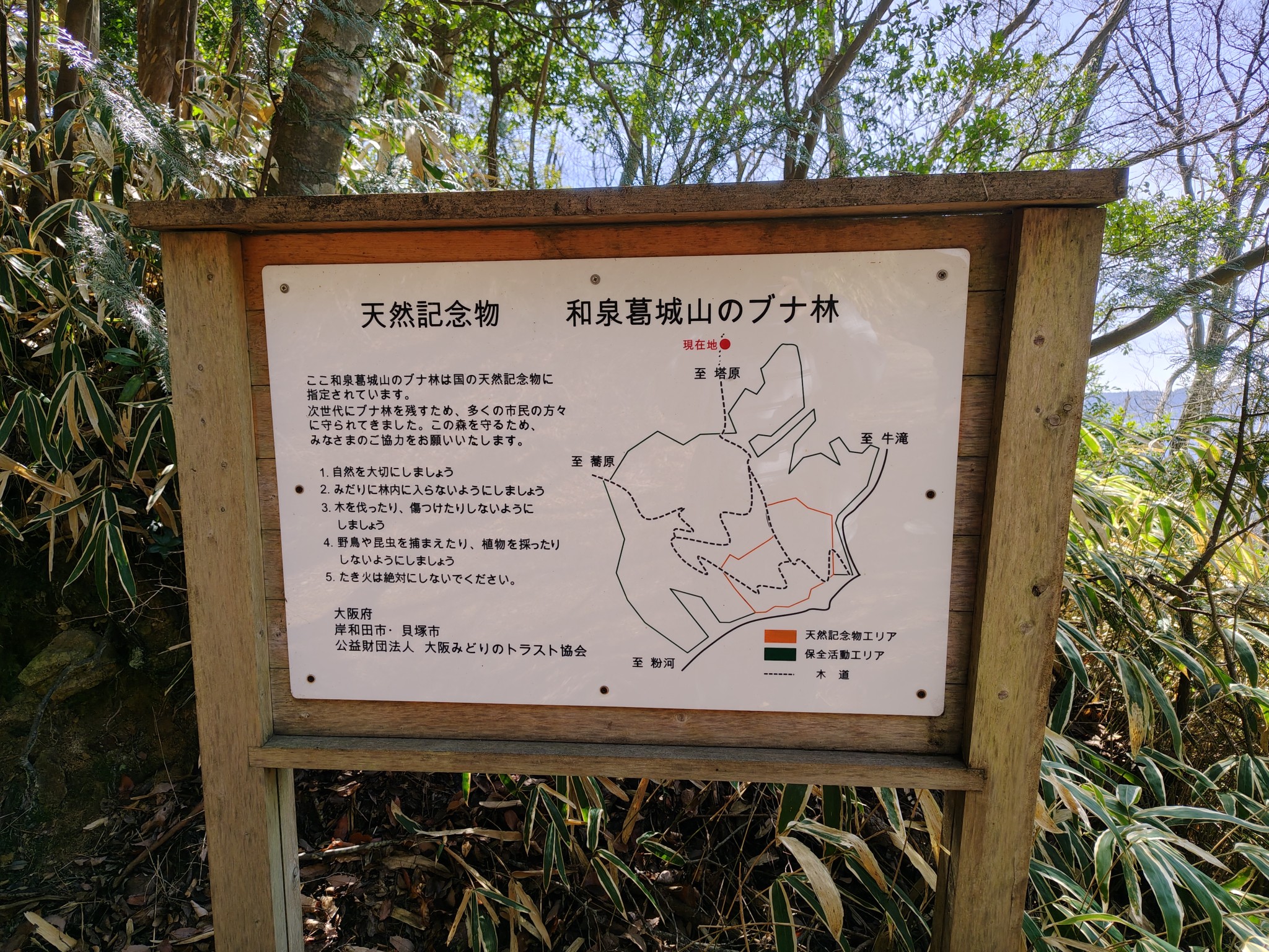 和泉葛城山のブナ林は、標高約850mという比較的温暖な地域に残る貴重なブナ林であることから、1923年に国の天然記念物に指定されています。その後の保全活動においては、1955年に岸和田高校生物部が実施したブナの分布調査が基礎データとして重要な役割を果たしてきたことが紹介されました。高校生による地道な調査研究が、地域の自然環境を守るための学術的・社会的な基盤となっていることを知り、生徒たちは探究活動の意義を改めて実感していました。