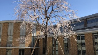 キャンパス整備事業の完成と学校創立80周年を祝し、槻友会(同窓会)から中庭に植樹された枝垂桜をご寄贈いただきました。これから長きにわたり、この枝垂桜が生徒の成長をあたたかく見守る存在になることを願っています。
